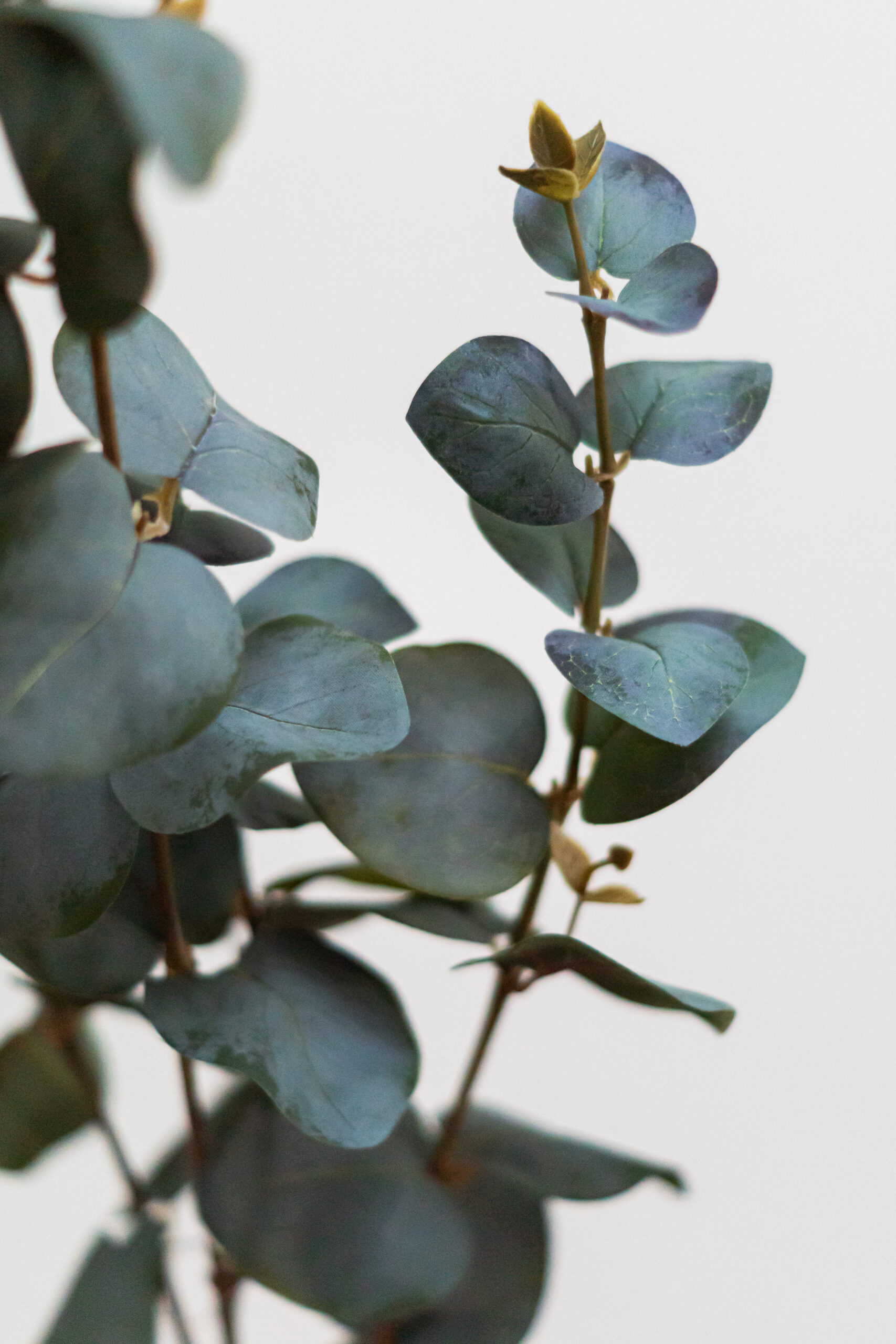 Deze decoratieve zijden kunsttak is een grote hit en is de ideale toevoeging aan jouw zijden boeket. De Eucalyptus vertakt zich in bladeren van verschillende afmetingen, voor een speels effect. De typische blauw/groene kleur van de Eucalyptus kunst tak komt zeer realistisch over en is bijna niet van echt te onderscheiden.