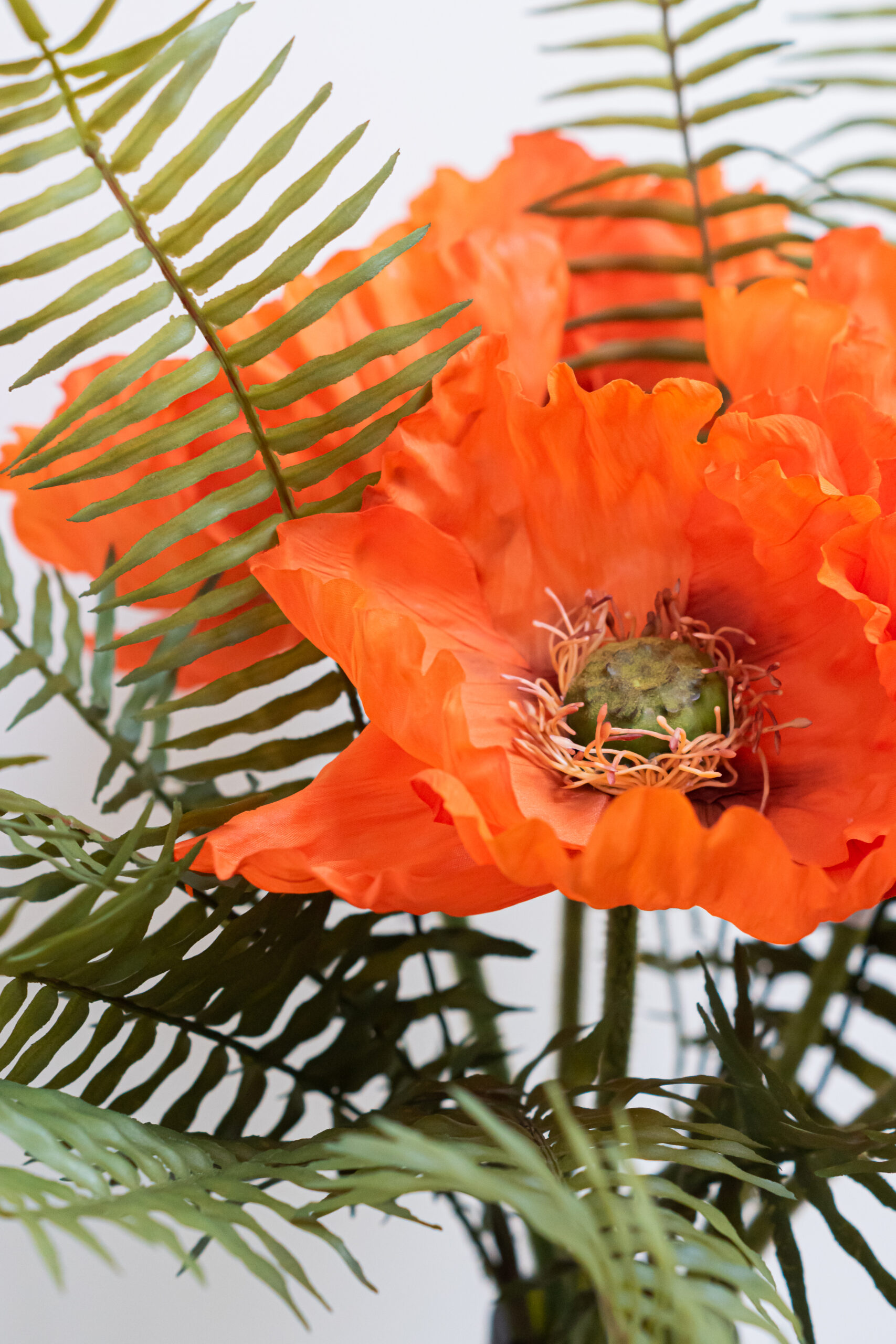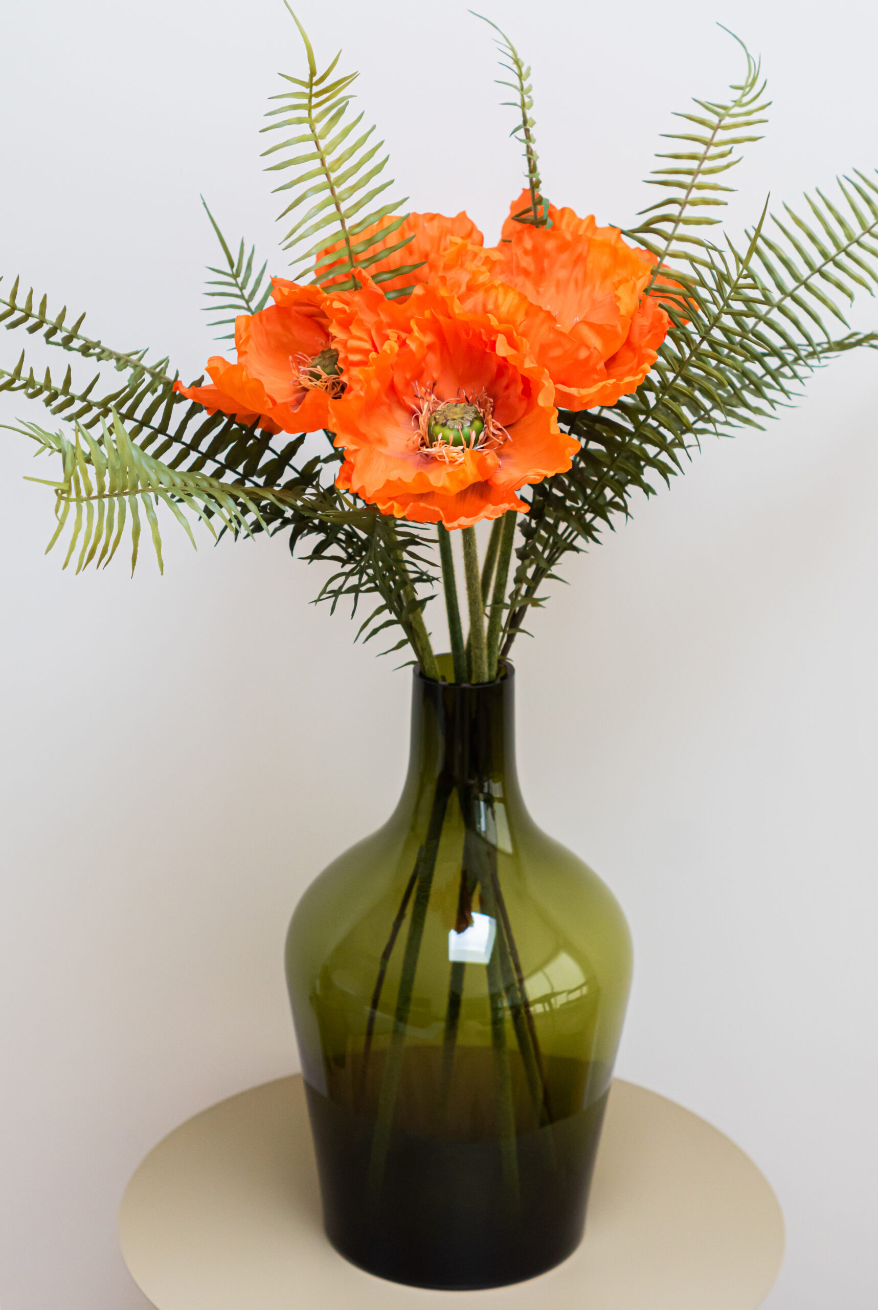 • Dit boeket bevat: 5x Papaver in de kleur oranje, 3x Fern Spray (varens)