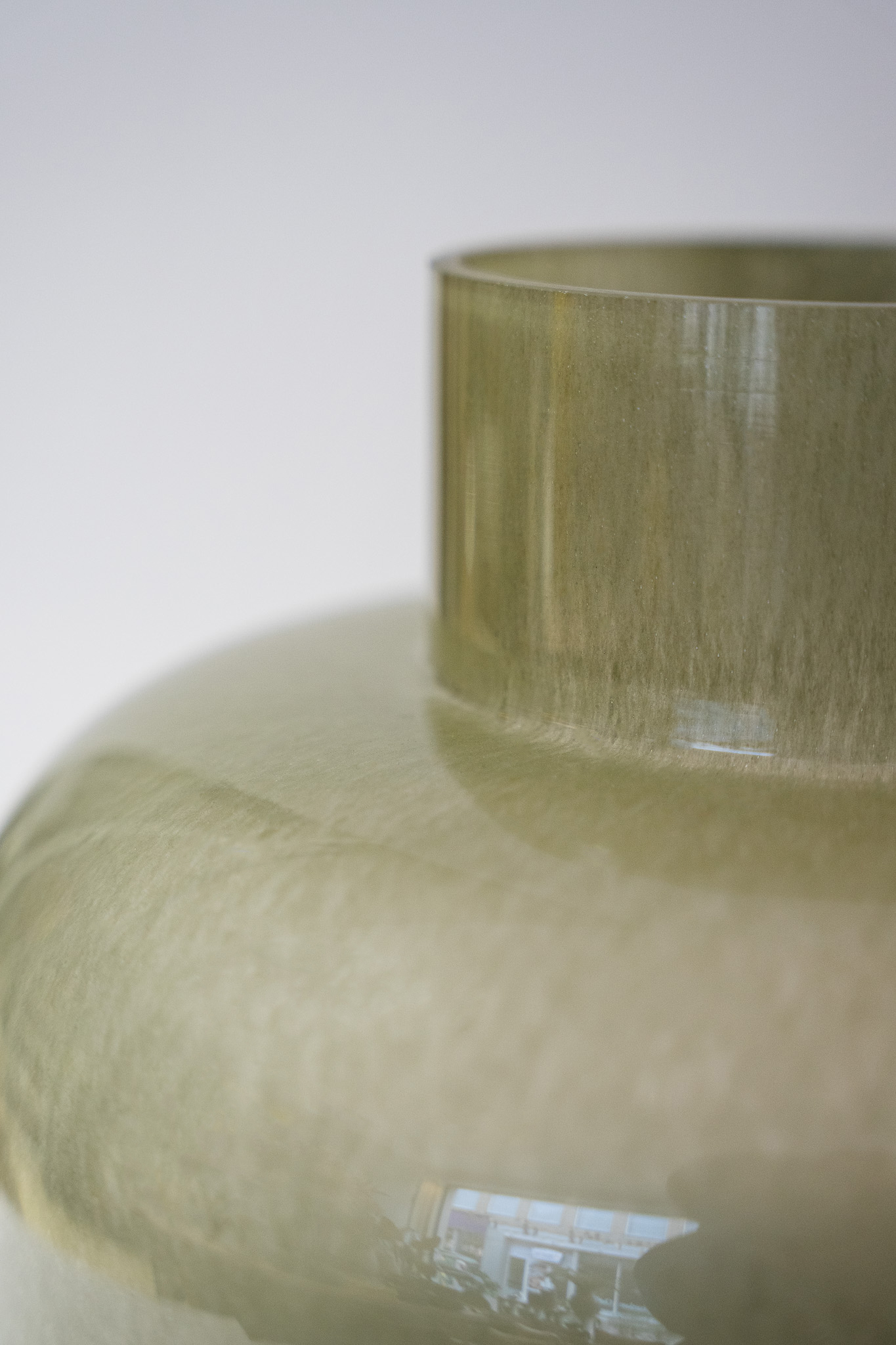 Mooie lage lichtgroene vaas gemaakt van glas. Staat erg mooi met een klein bosje zijden bloemen op de eettafel of op een dressoir, maar ook met een sierlijke zijden tak steelt hij de show. Een ideale vaas voor een speels boeket tulpen.