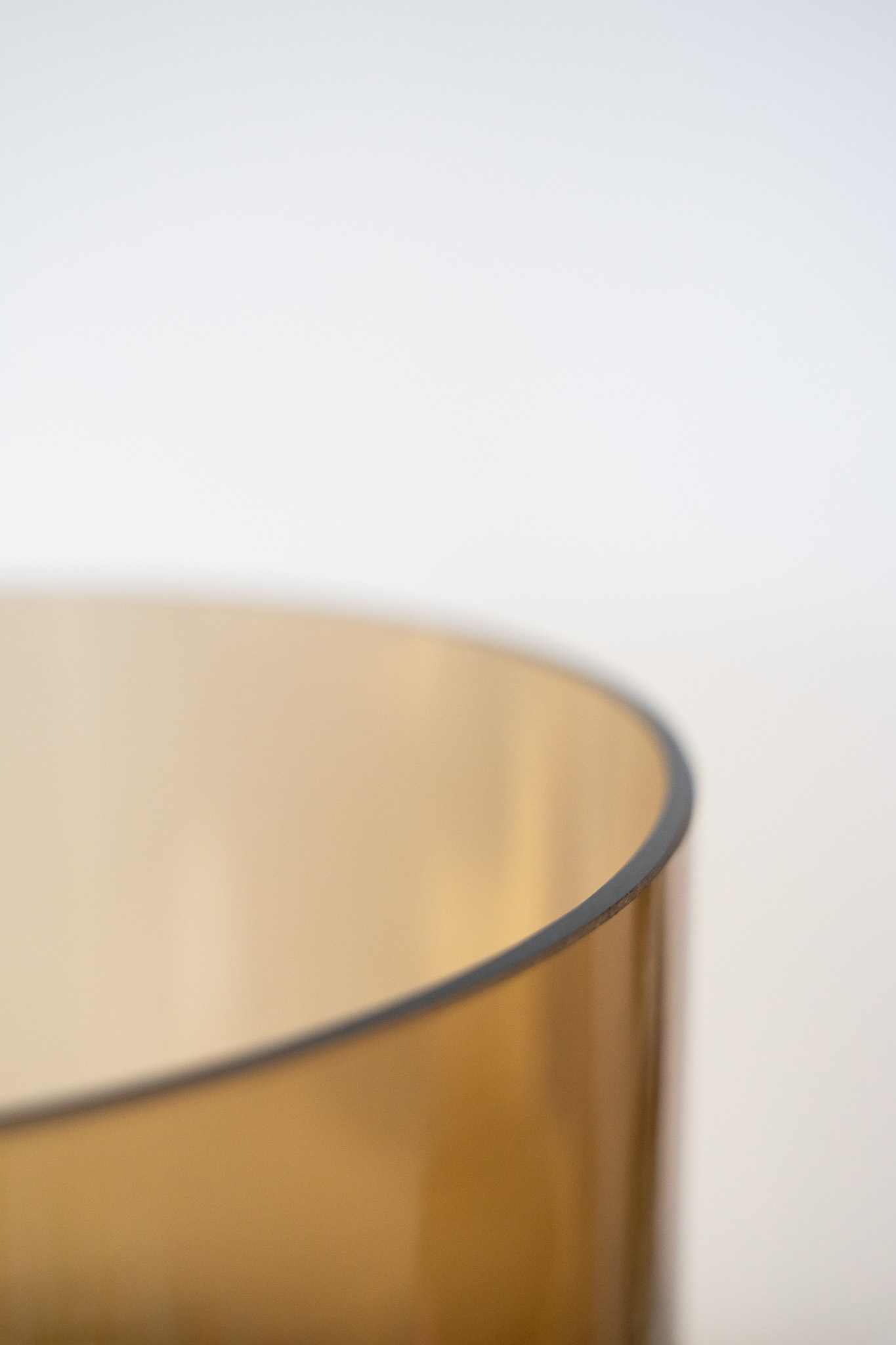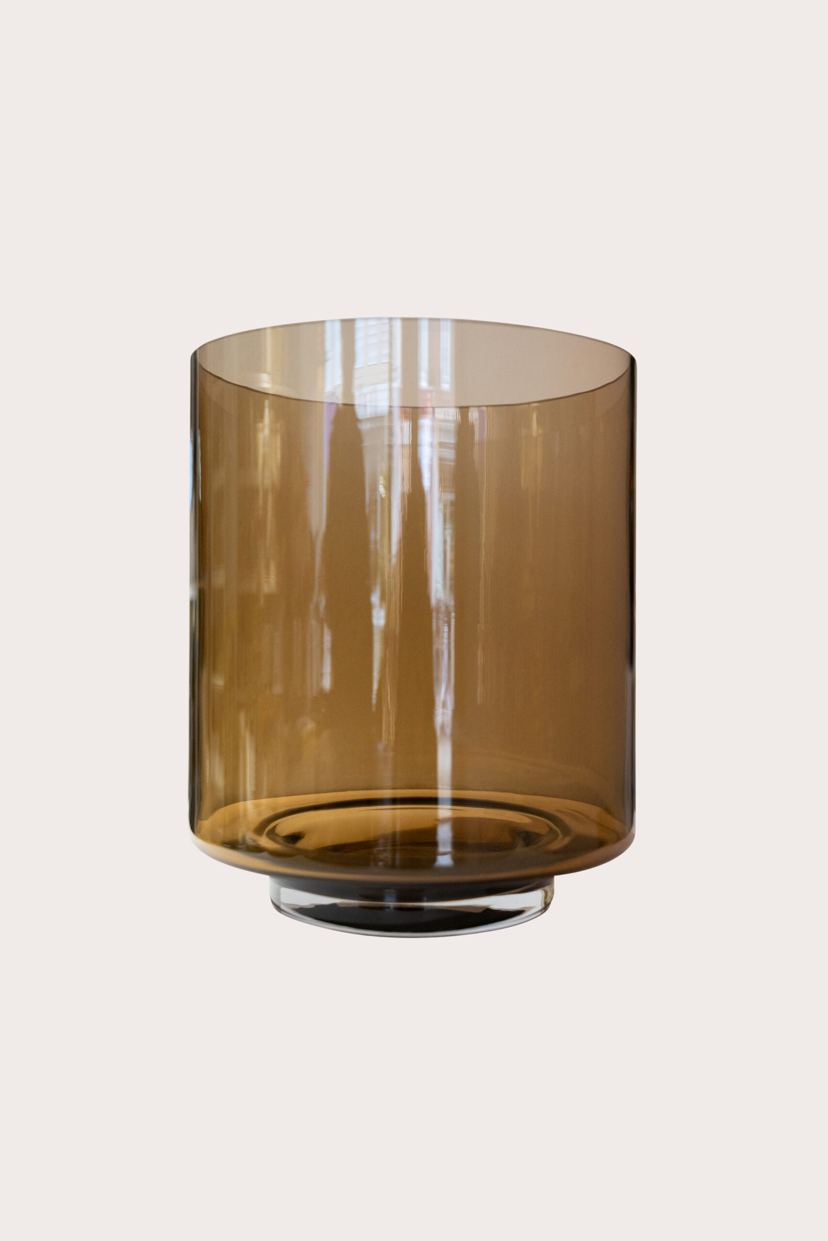 Prachtige ‘Hurricane’ vaas gemaakt van glas in leuke coffee kleur. Staat erg mooi met een bos zijden bloemen op de eettafel of op een dressoir. De vaas heeft een diameter van 20 cm waardoor de bloemen wijder zullen vallen. Ook beschikbaar in een groter model en in tijdloze Smokey Grey kleur.