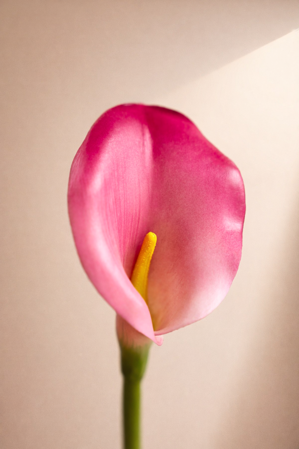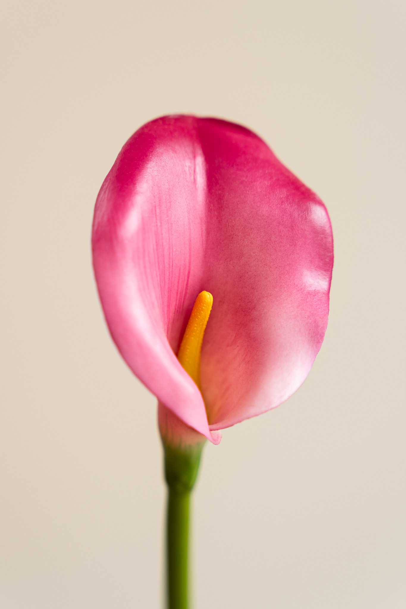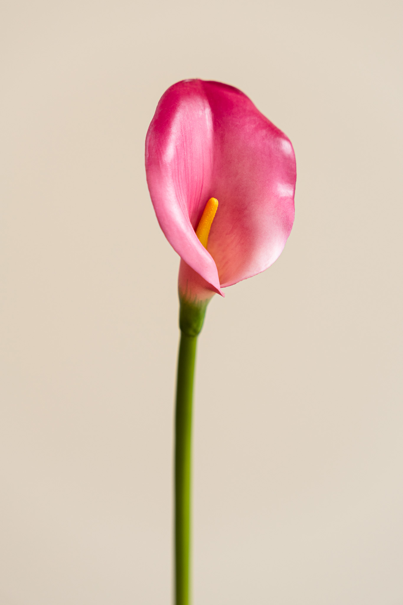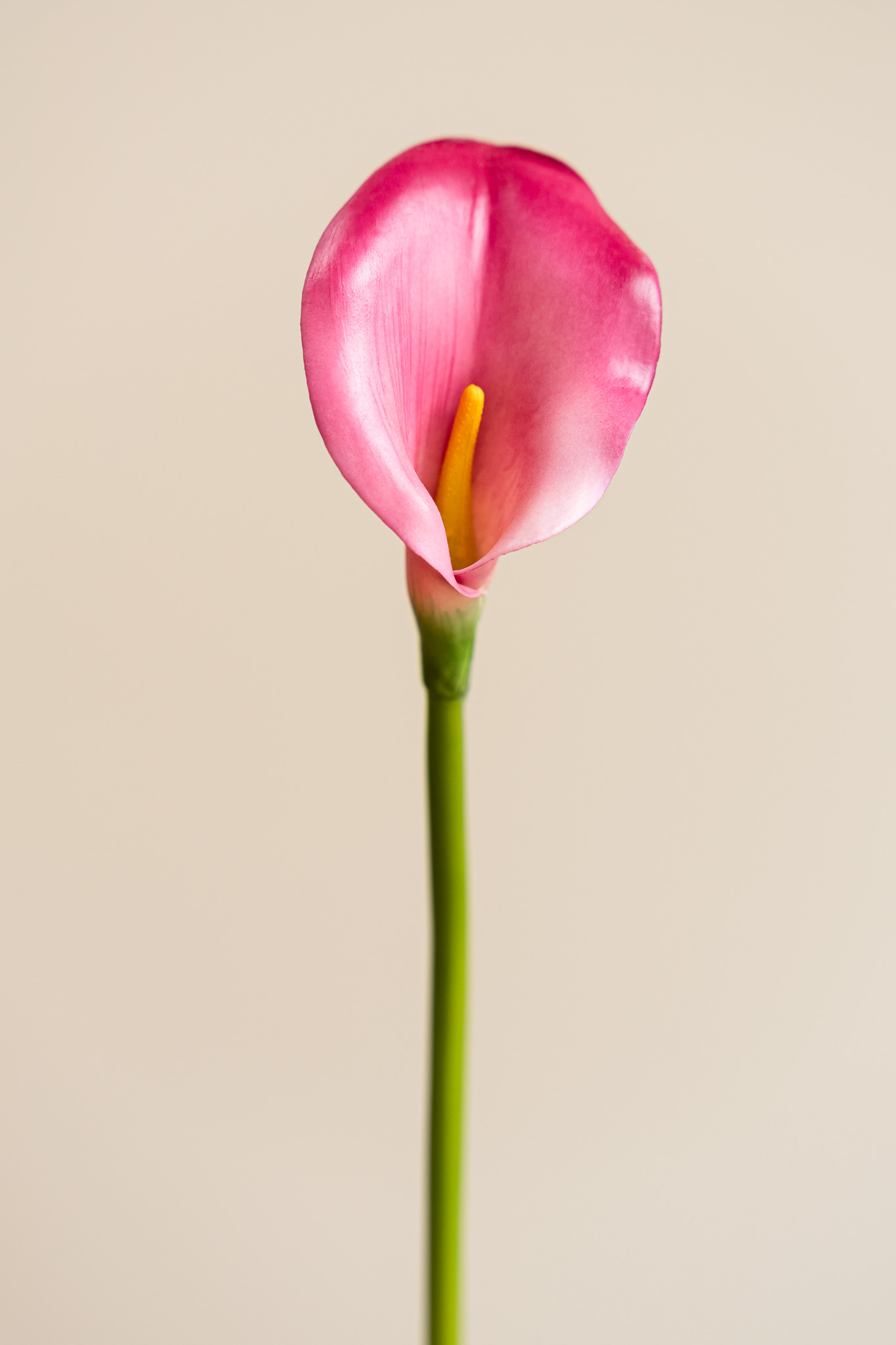 De Calla Lily is met zijn unieke trompetvormige blad en diep roze tint, een mooie toevoeging aan jouw boeket. Door de lengte van de bloem zijn de Calla Lelies Roze perfect voor een wat kleiner zijden bloemenboeket.