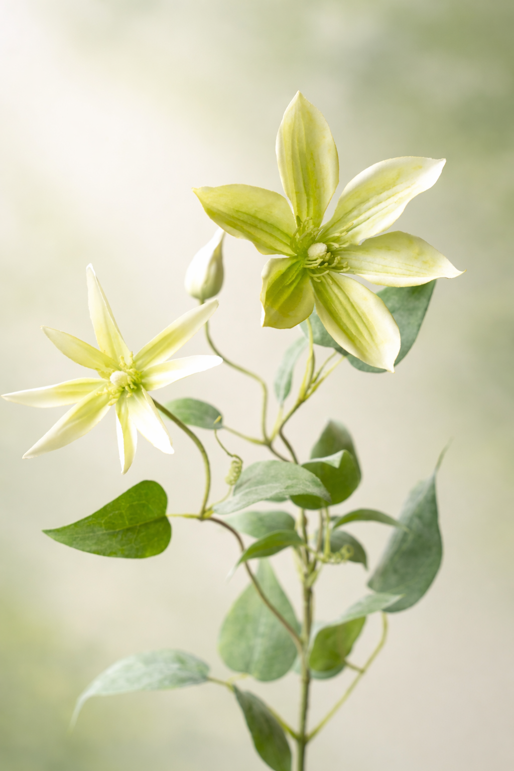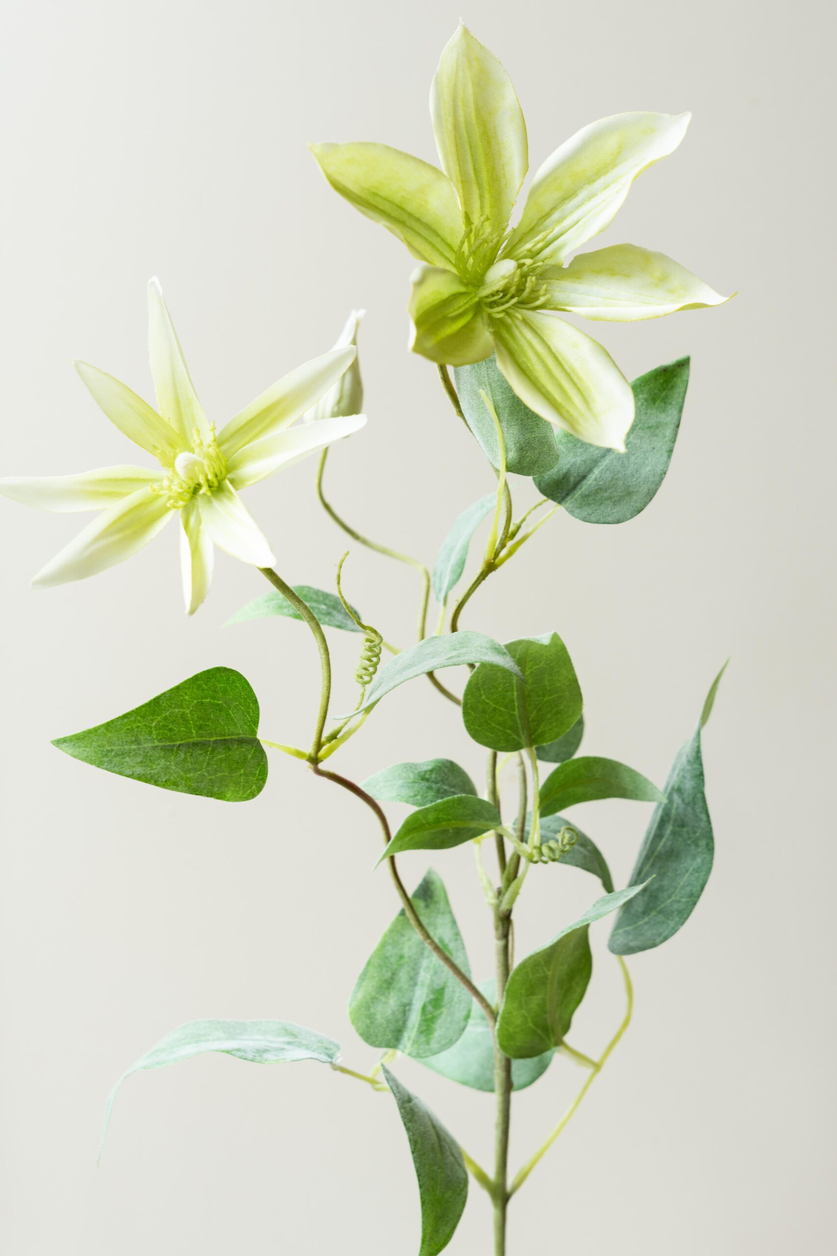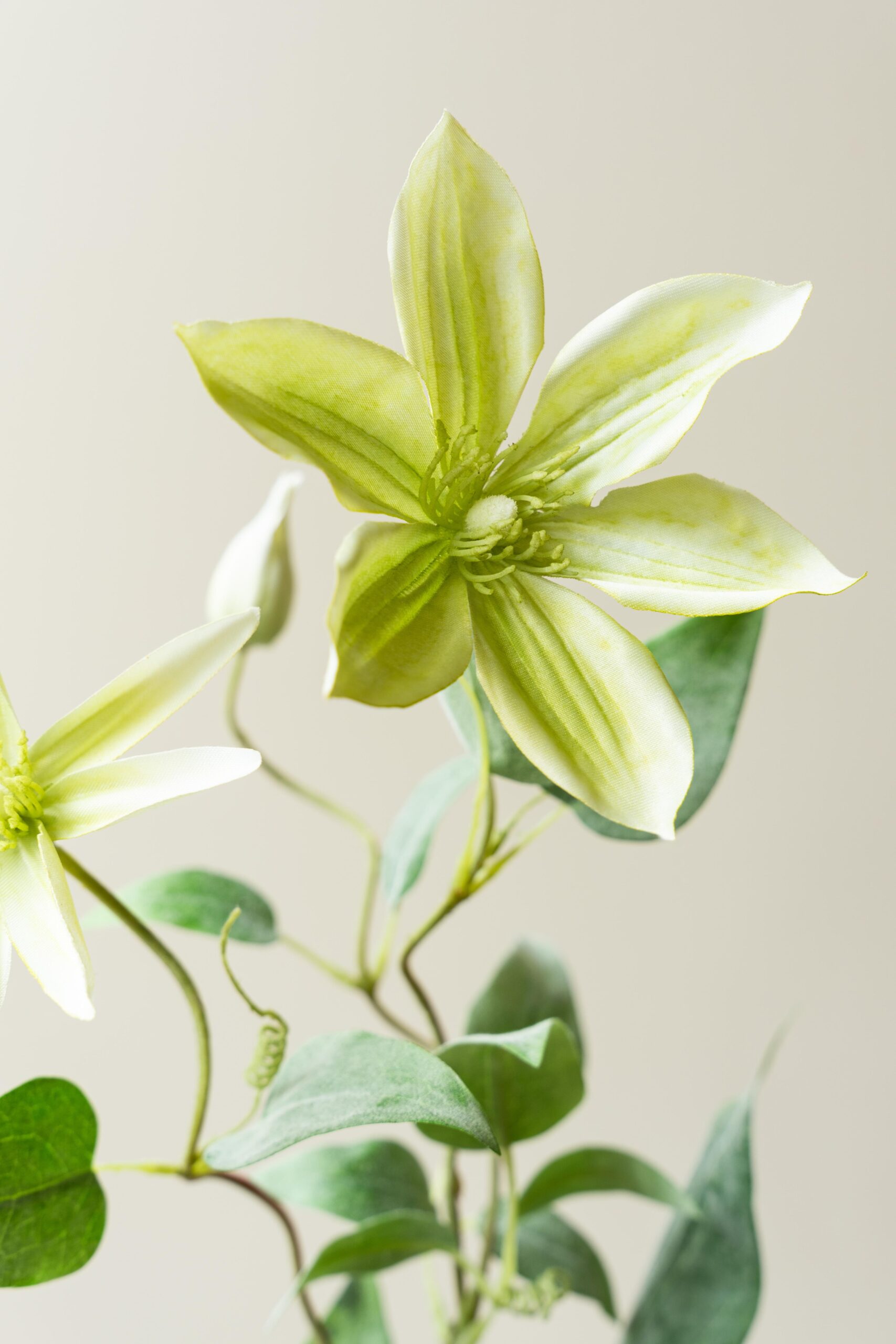 Schitterende Silkflower, de Clematis Green. Deze zijden bloem is nauwelijks van echt te onderscheiden en laat zich uitstekend lenen voor ieder soort zijden bloemen boeket. Deze tak geeft ieder boeket net dat beetje groen wat nodig is en brengt daarmee een frisse touch.
