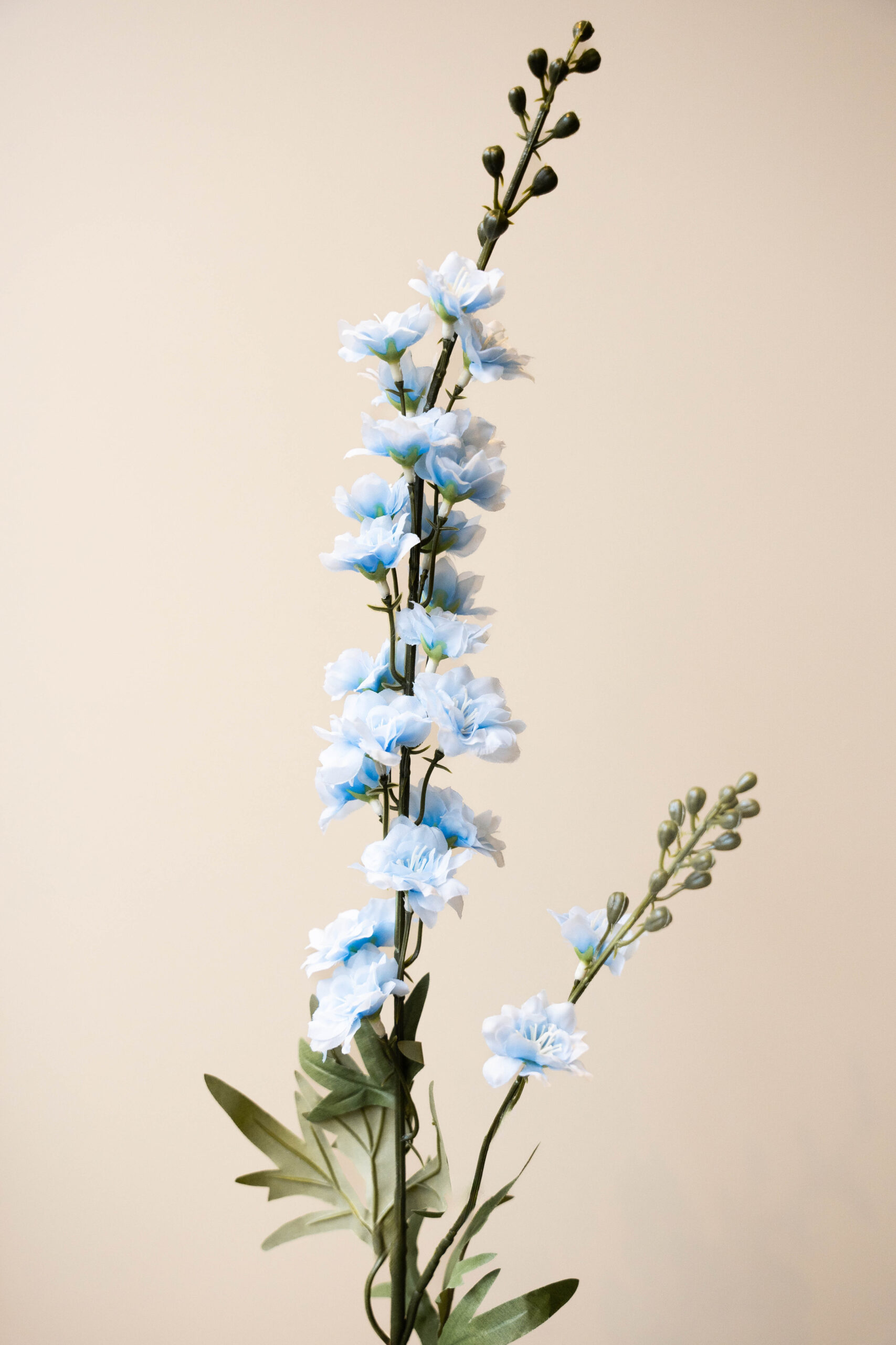 Deze prachtige bloem, de Delphinium Snow Blue is dé perfecte zijden bloem voor in een zijden boeket. Deze kunstbloem heeft een prachtige lichtblauwe kleur en geeft door zijn hoogte wat extra pit. De Delphinium is leuk te combineren met andere blauwtinten maar is ook een geschikt model voor in een gemengd zijden boeket.