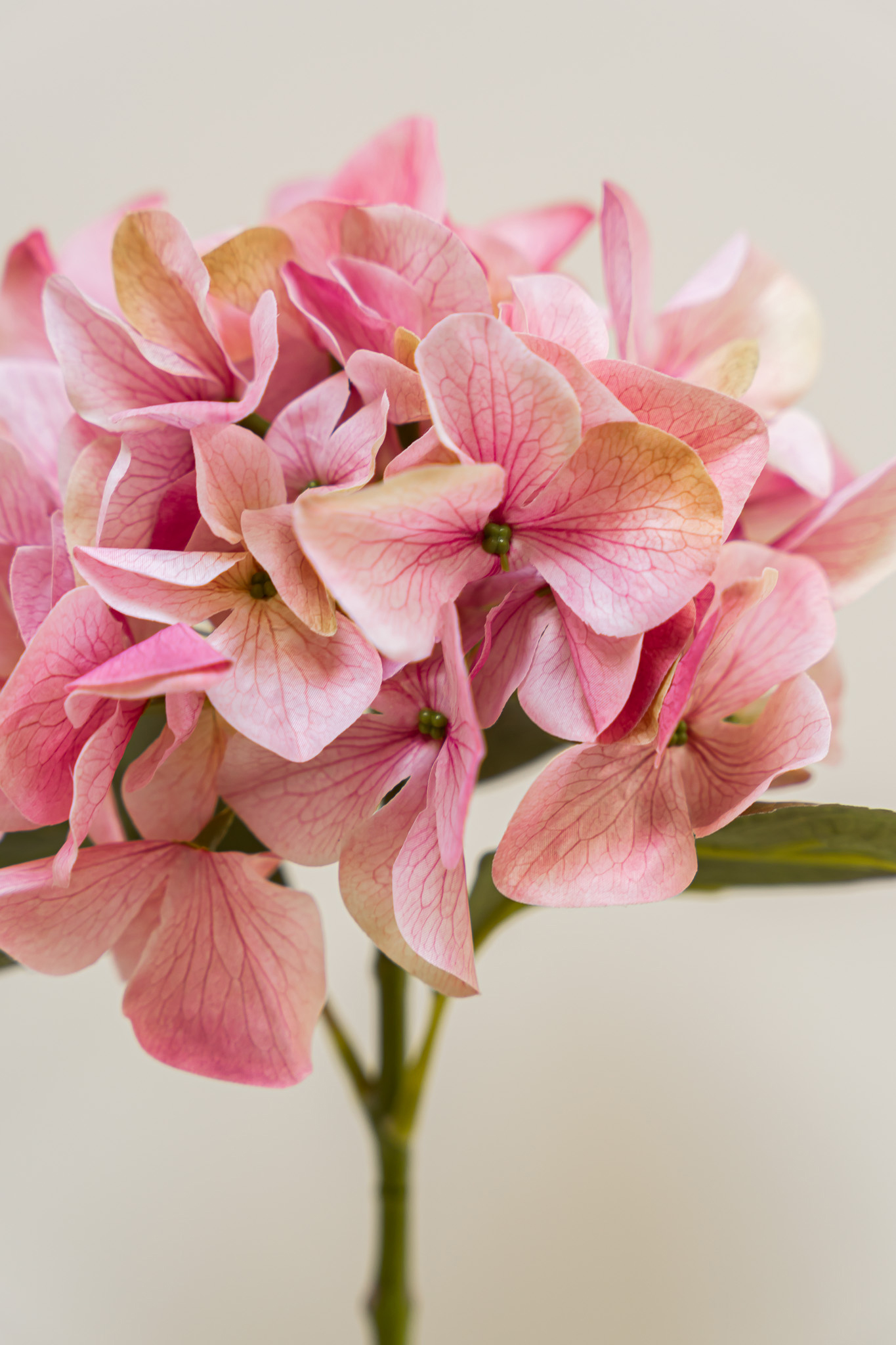 Deze prachtige zijden bloem is een goede opvulling voor uw zijden boeket. Maar ook solo of met een paar samen staan ze geweldig in een vaas. De Hydrangea is verkrijgbaar in het roze en licht roze, die ook samen een speelse combinatie maken. Prachtig afgewerkt en één van onze favorieten.