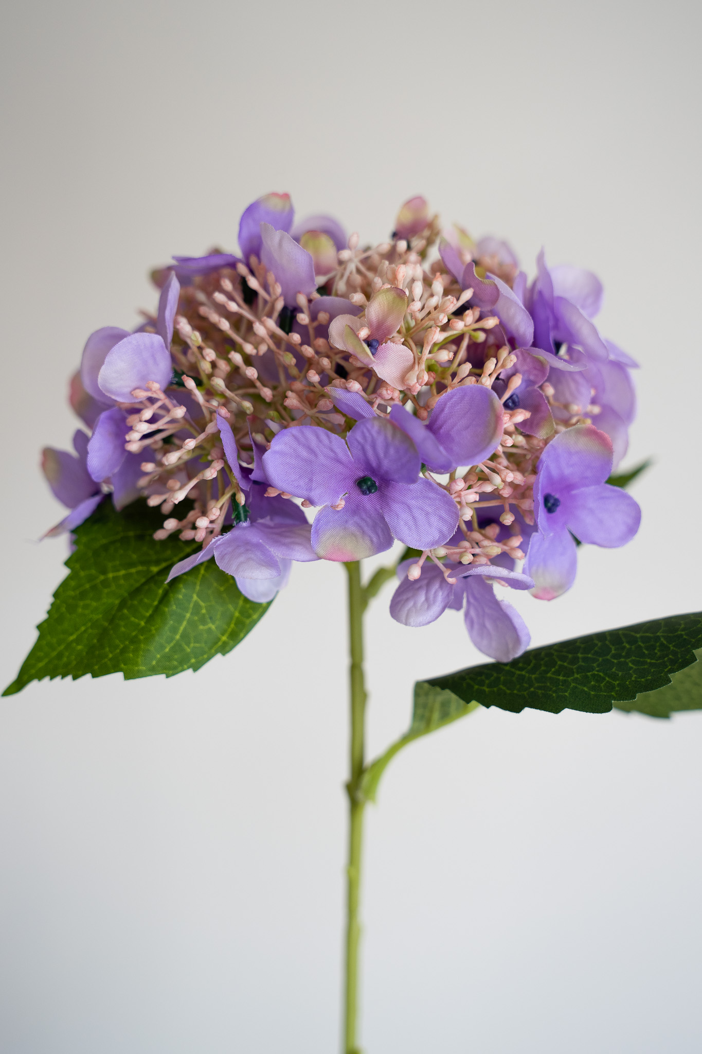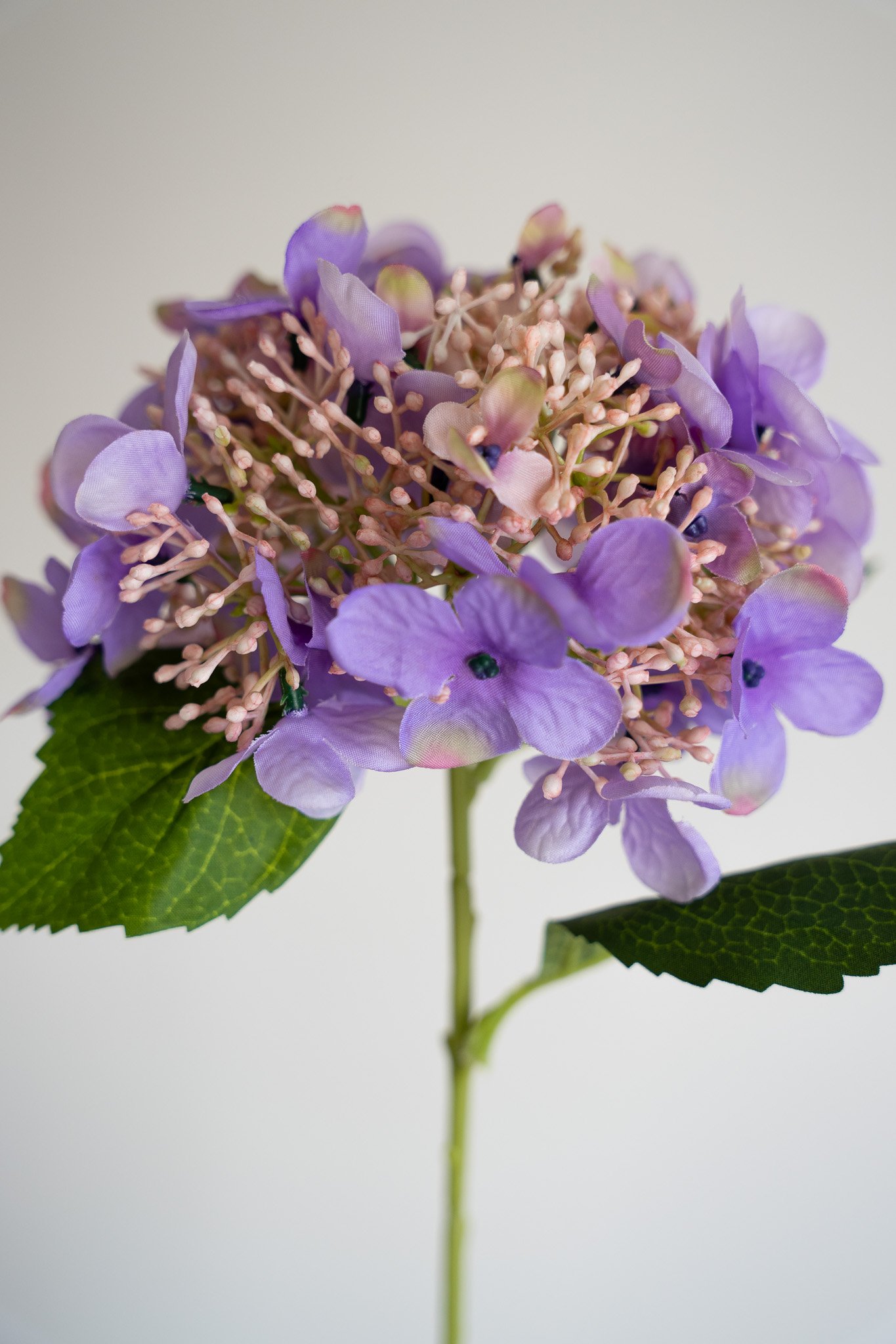 Deze prachtige zijden bloem is een goede opvulling voor uw zijden boeket. Maar ook solo of met een paar samen staan ze geweldig in een vaas. De Hydrangea is verkrijgbaar in het lichtroze, roze, paars en groen. Door verschillende takken te combineren maken zij samen ook een speelse combinatie. Prachtig afgewerkt en één van onze favorieten.