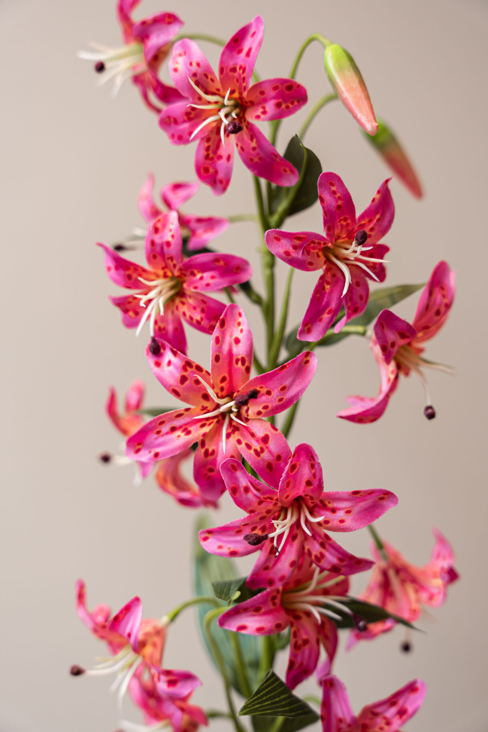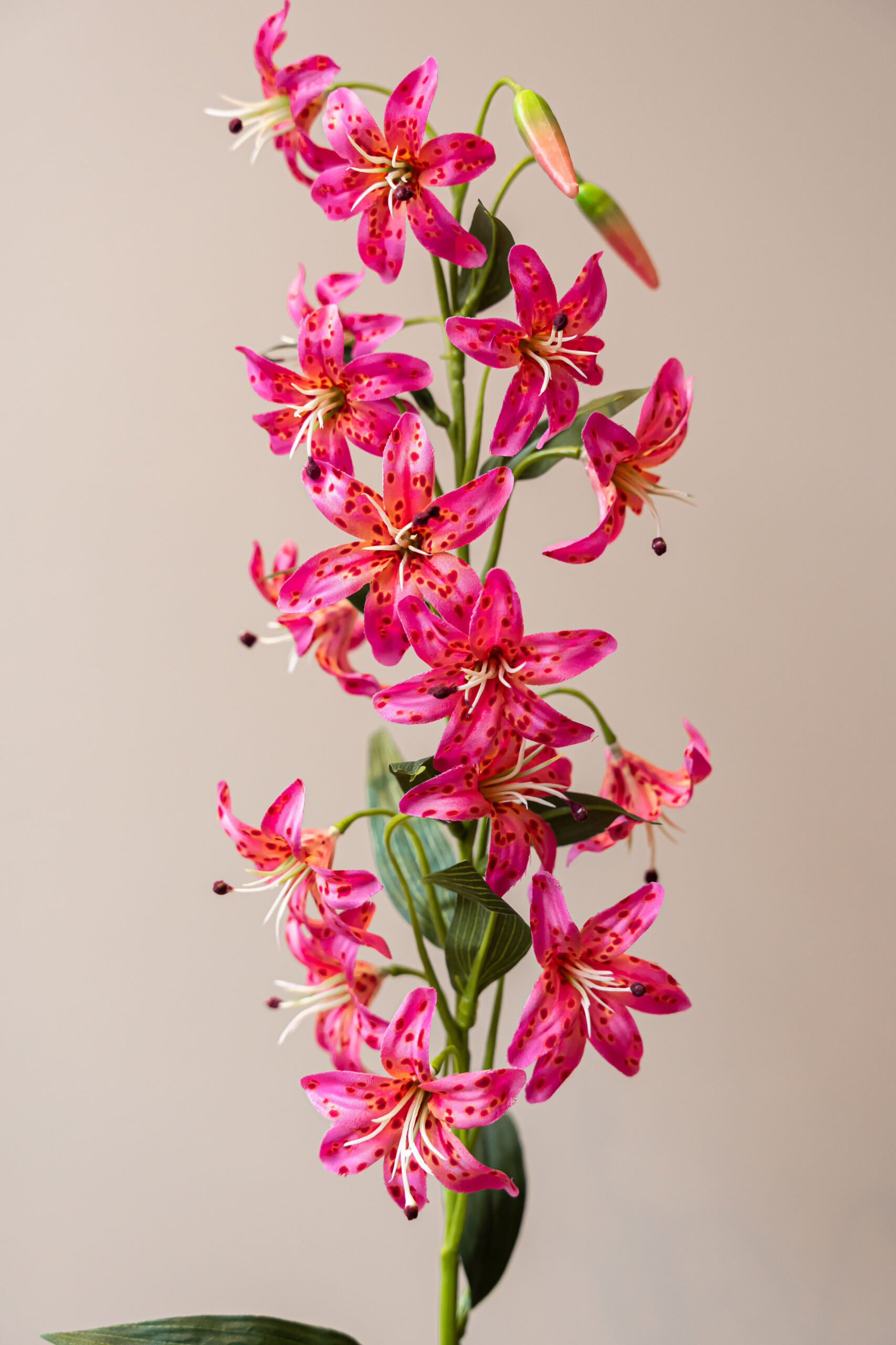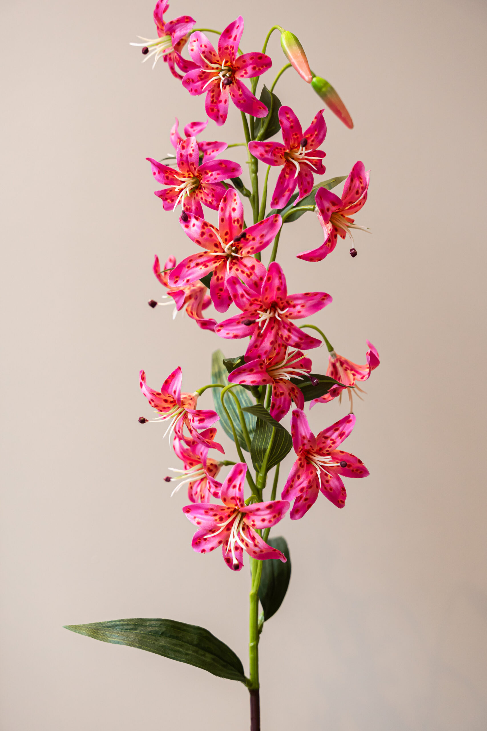 Deze klassieke roze Lelie komt helemaal tot zijn recht in een vrolijk lente- of zomer zijdenbloemen boeket. Deze felle zijdenbloem voegt in een klap een enorme hoeveelheid kleur en gezelligheid toe een jouw zijden bloemen boeket. Een van onze bestsellers!
