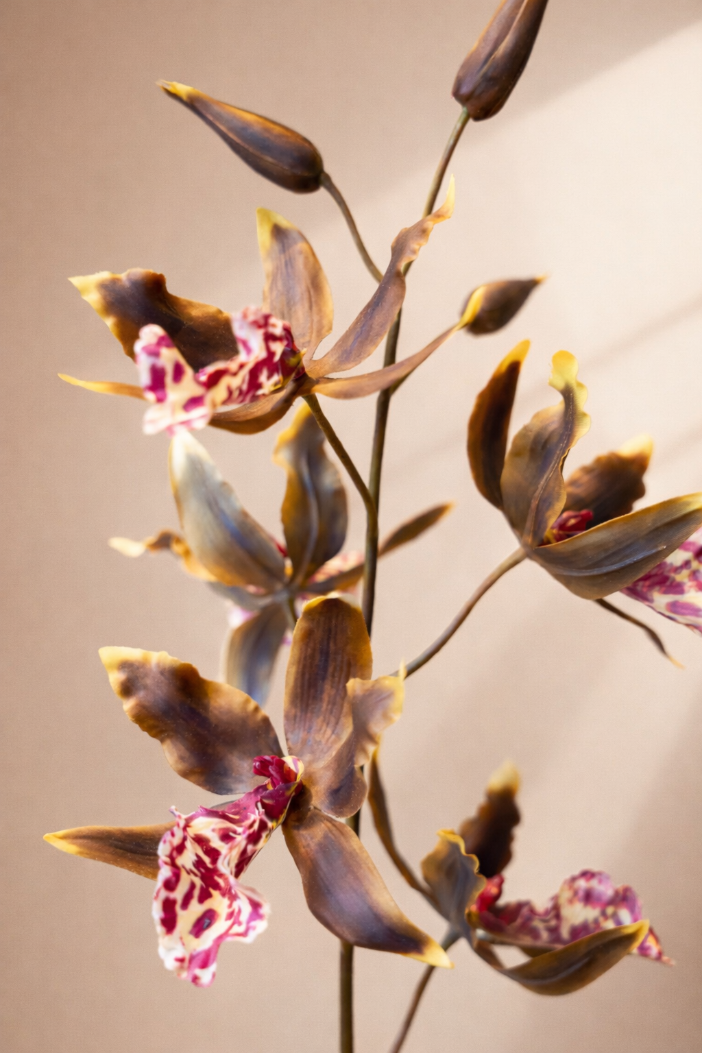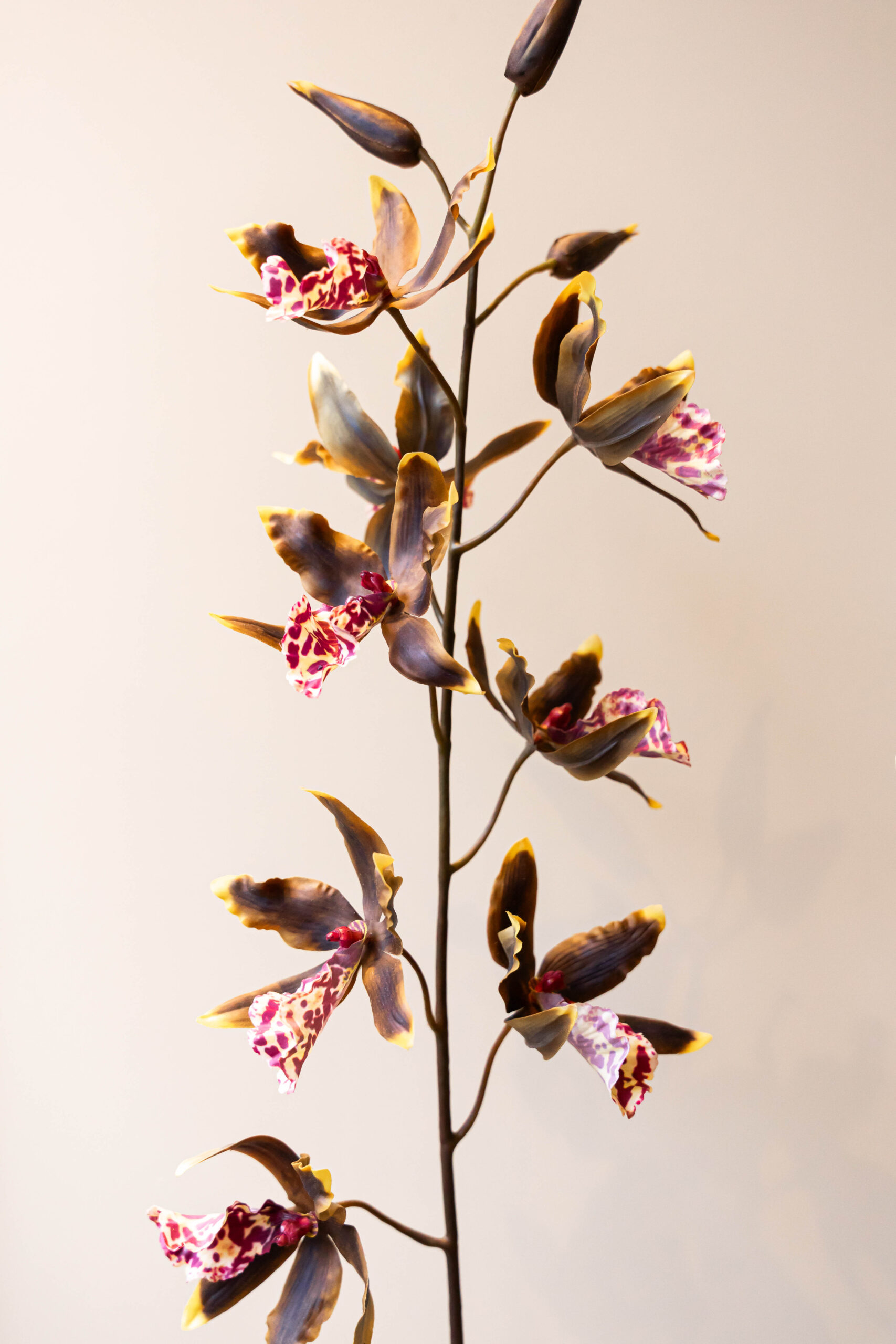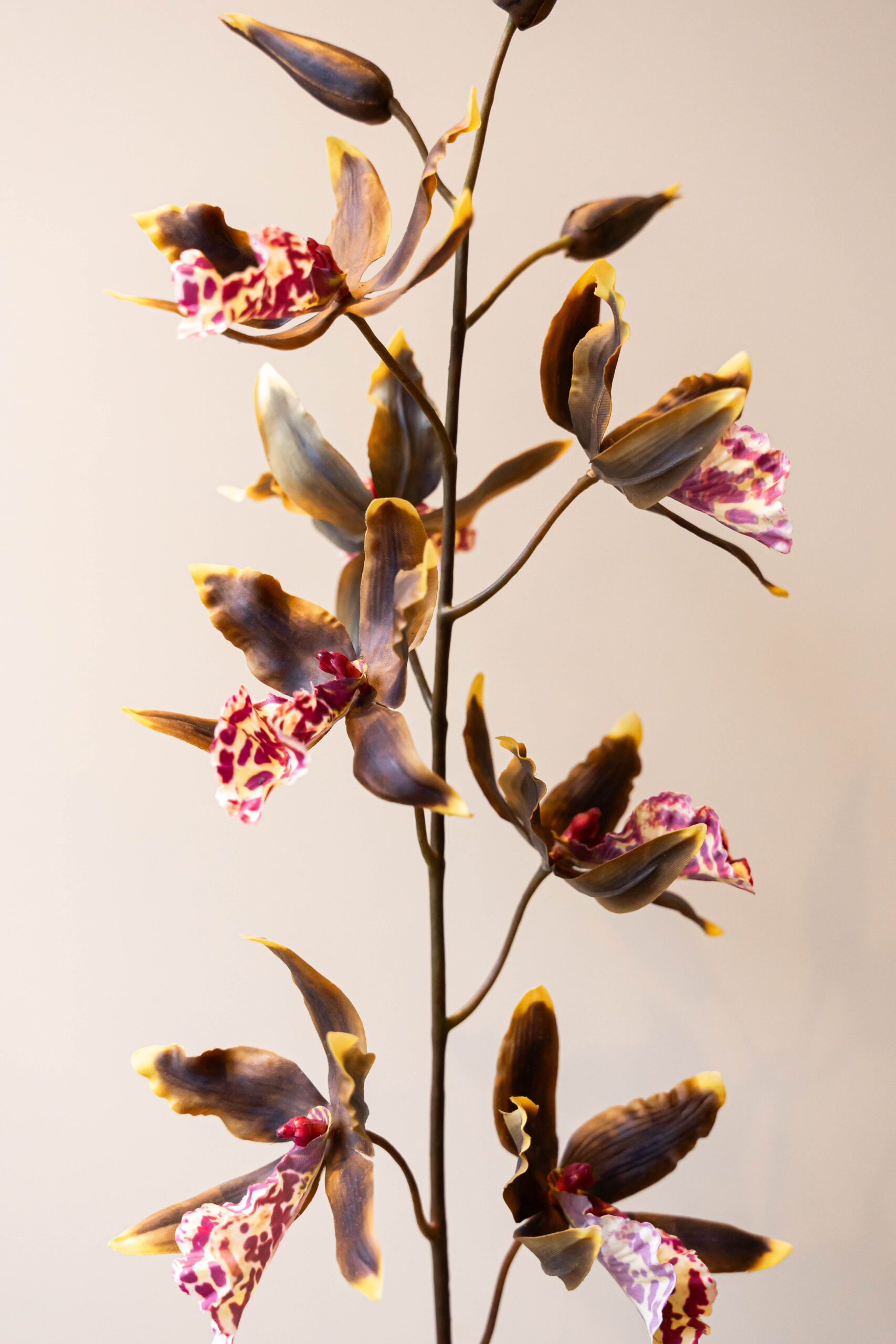 Met zijn sierlijk gebogen stengels en zachte, luxe bruinkleurige bloemblaadjes is deze Orchidee een echte uitblinker in ieder zijden boeket. Deze zijden bloem is perfect als eyecatcher in jouw woonkamer, slaapkamer of kantoor en zal zeker het middelpunt van elke kamer worden. Ook alleen in een vaas komt deze zijden bloem helemaal tot zijn recht.