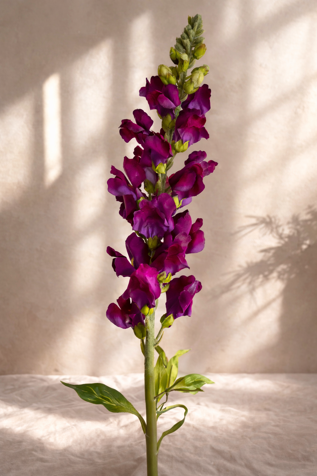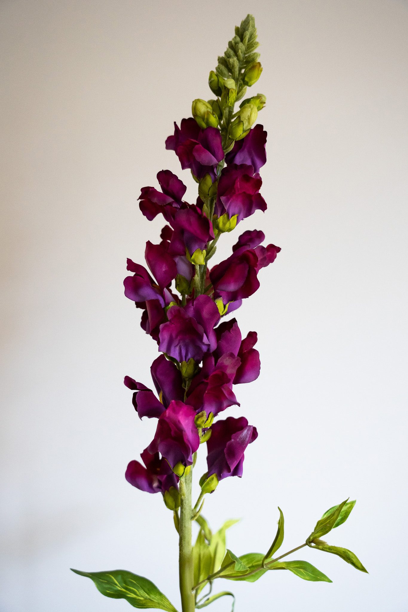 Maak jouw kunstbloemen boeket compleet met deze prachtige Snapdragon tak. Een mooie bloem met slanke stam en prachtige roze / paarse kleurige bladeren. Deze zijden bloem staat prachtig in een zijden boeket maar kan natuurlijk ook los in de vaas.