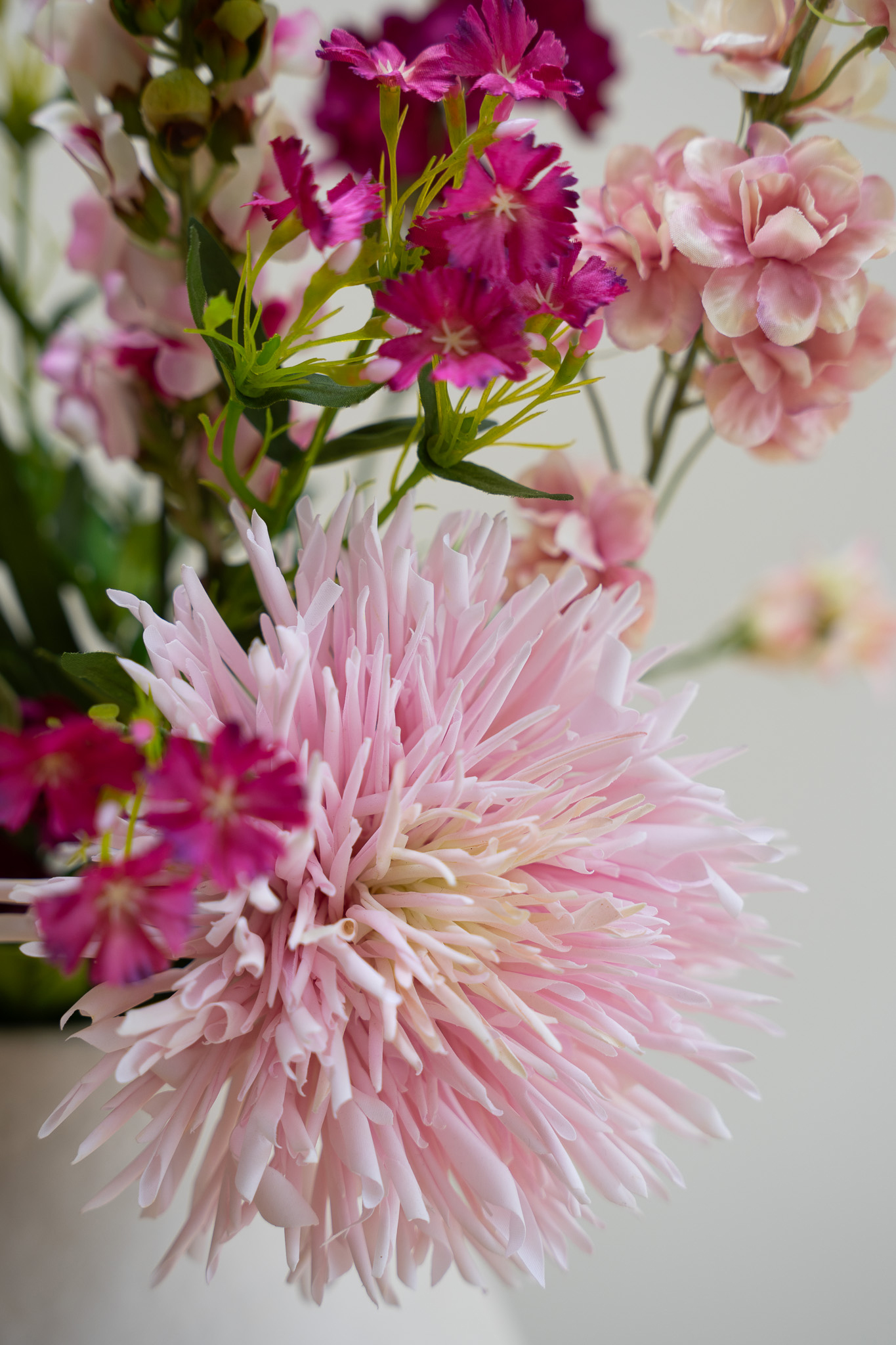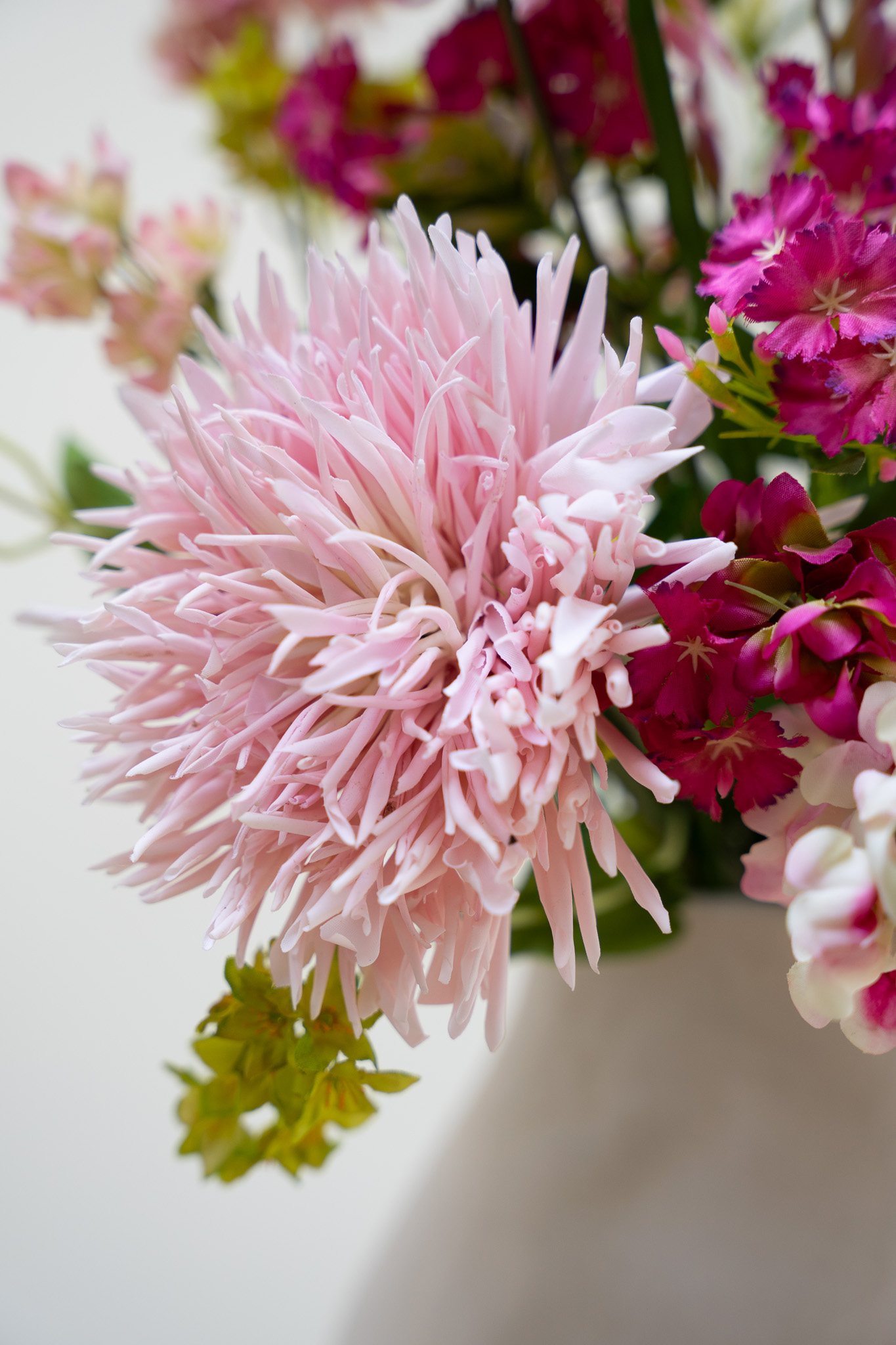 • Dit boeket bevat: 3x Chrysant licht roze, 1x Royal Dianthus Roze, 1x Bupleurum, 2x Delphinium licht roze,