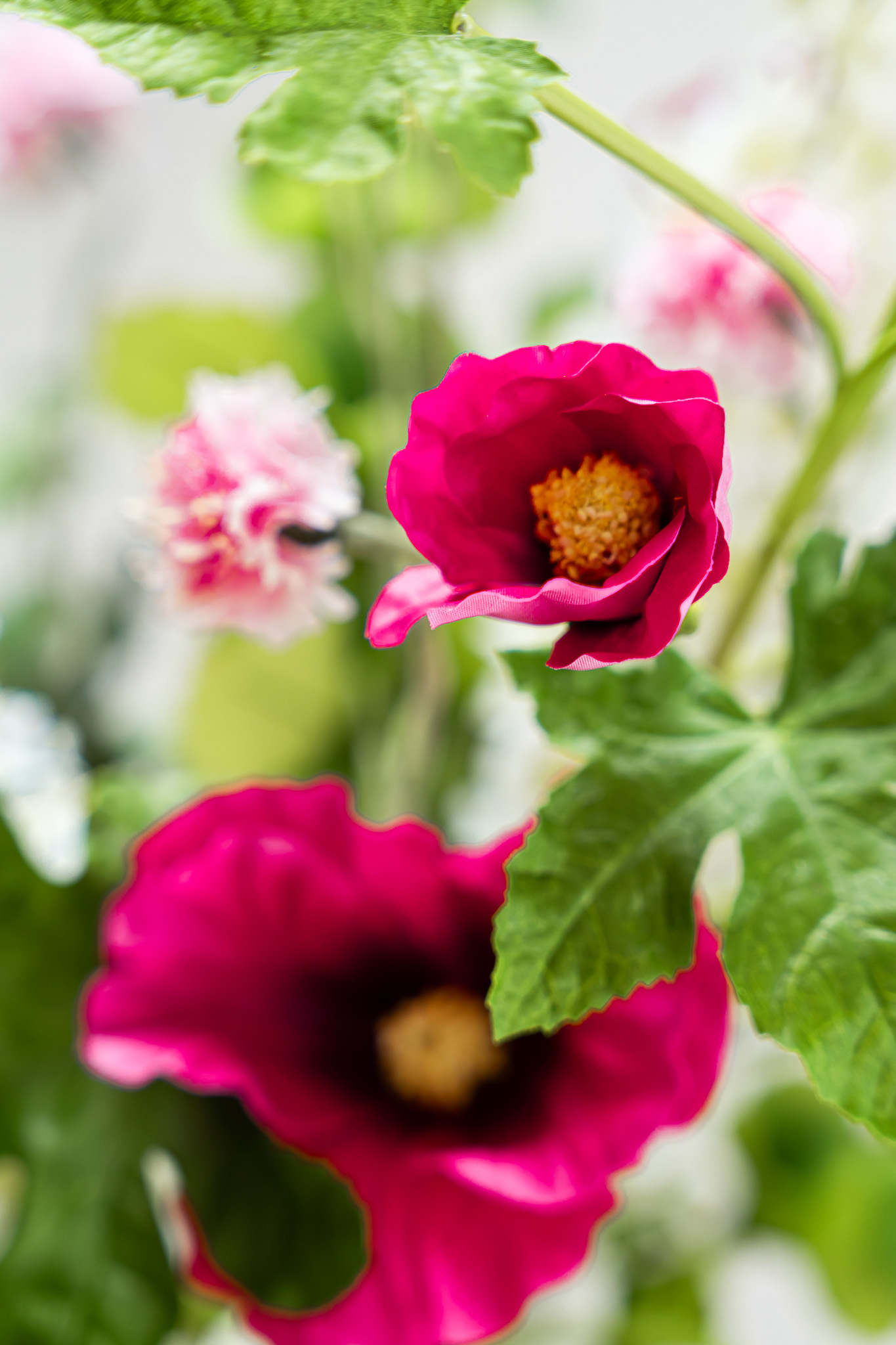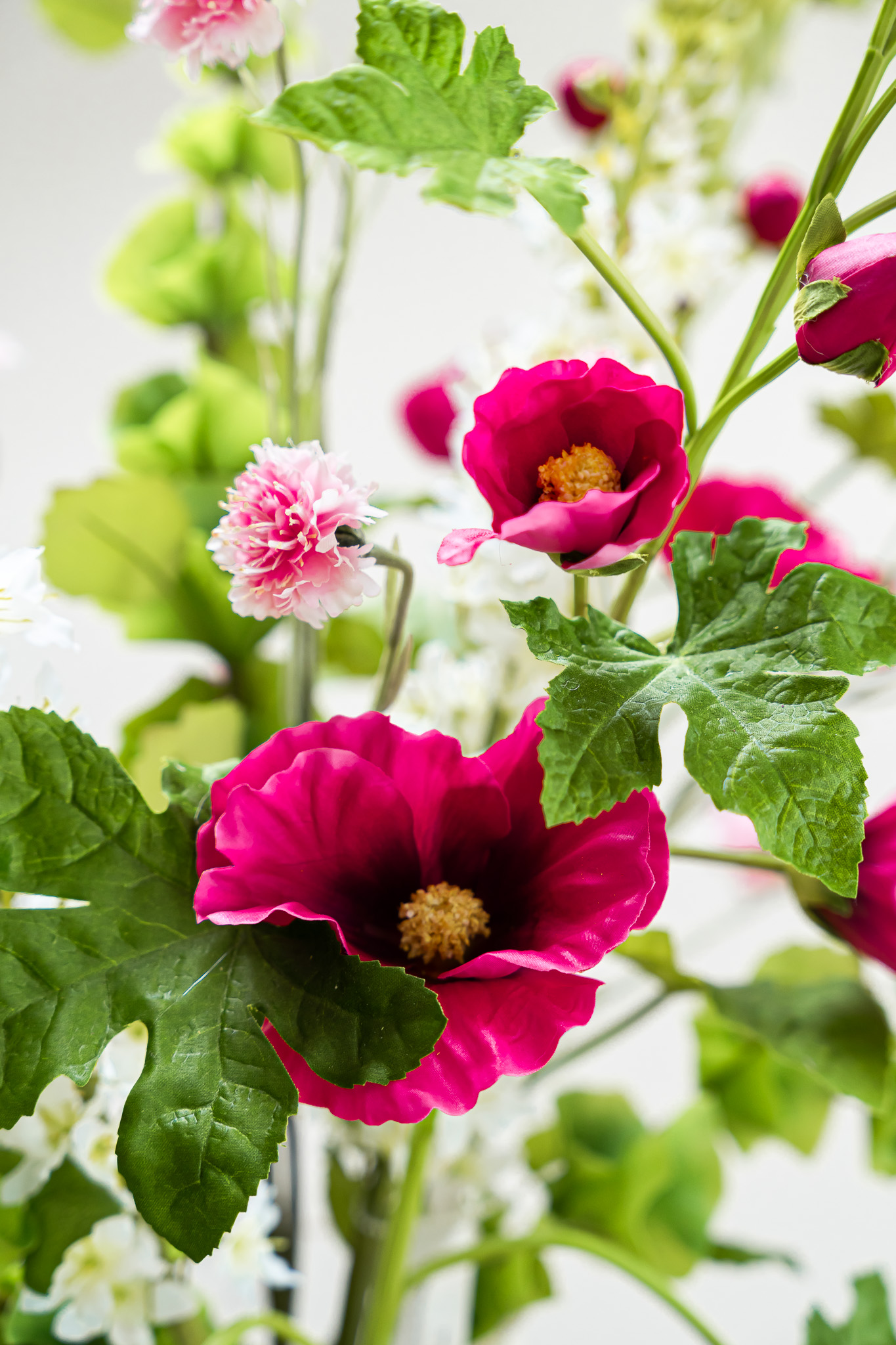• Dit boeket bevat: 3x Stokroos (Hollyhock Spray), 2x Eremerus White, 3x Bells of Ireland, 2x Korenbloem Roze