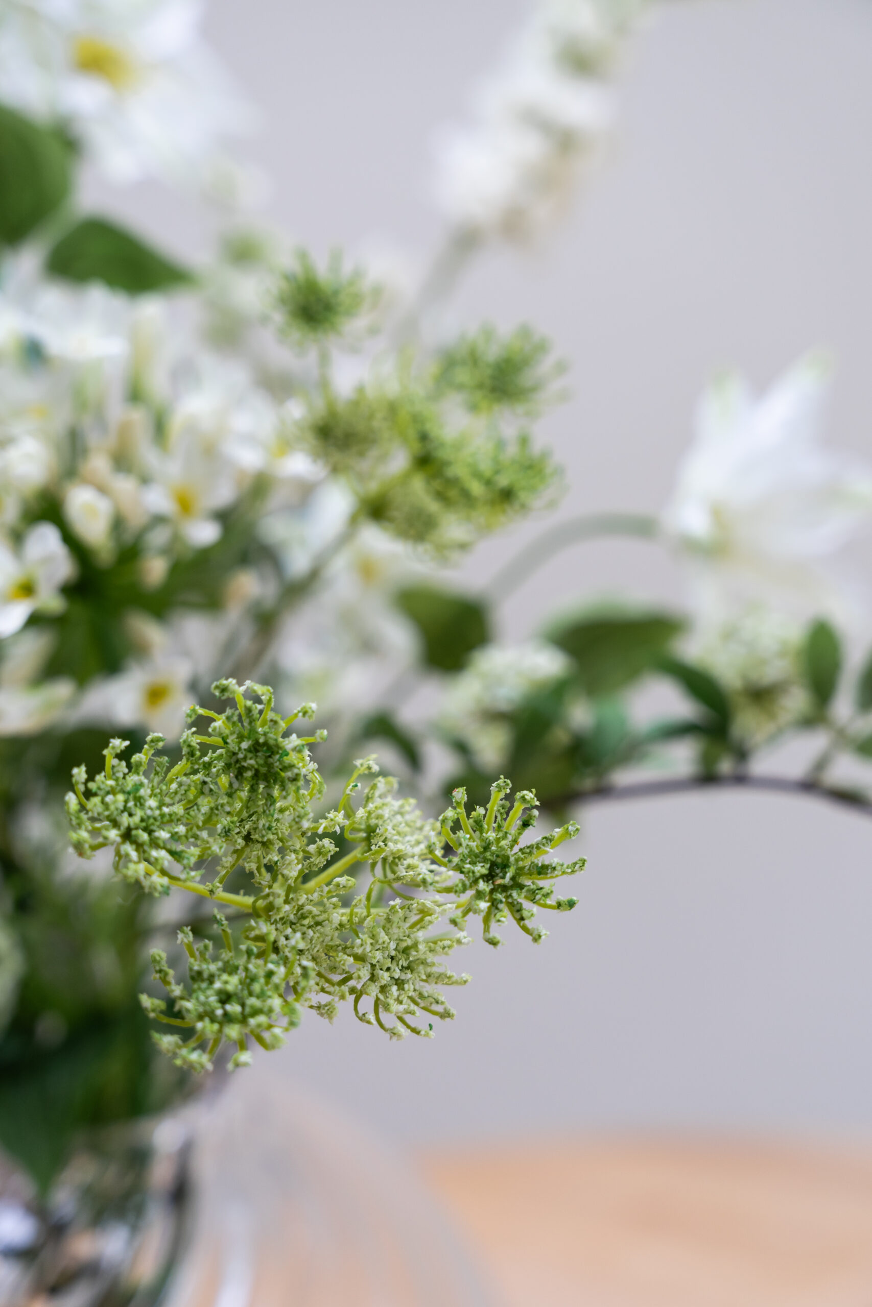 1x Clementus Spray White, 1x Agapanthus White, 1x Queen Anne’s Green