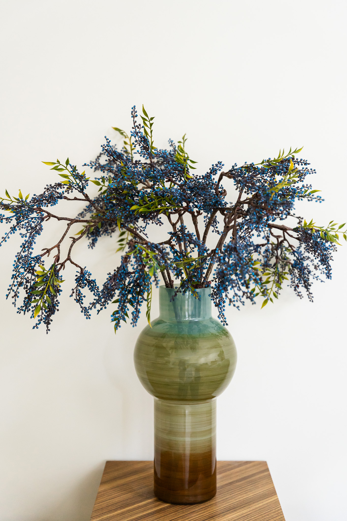 Deze prachtige bessen takken geven een mysterieus en luxe gevoel. De takken zijn ontzettend veelzijdig en staan mooi in allerlei verschillende ruimtes en interieur stijlen. Doordat de besjes subtiel blauw van kleur zijn, combineren ze gemakkelijk met andere kleuren in huis. Een ideaal boeket met volume maar die niet overheerst. Ook per tak verkrijgbaar.
